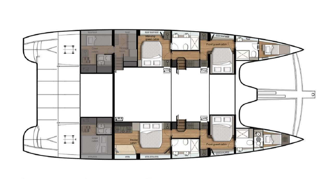 This twin-hulled marvel offers expansive onboard space, a pristine haven for up to 8 discerning guests. Following a recent opulent refurbishment, every detail exudes an inviting atmosphere, where the seamless transition from indoor to outdoor beckons you to wake up and plunge into the sea effortlessly, no need for complex procedures or crew assistance.