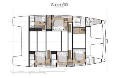 VALENTINE distinguishes herself from her sisters by focusing on her high-performance sails, which include a carbon mast, boom, and a new all-carbon constructed flybridge bimini, making her the greatest Sunreef 60 on the charter market.