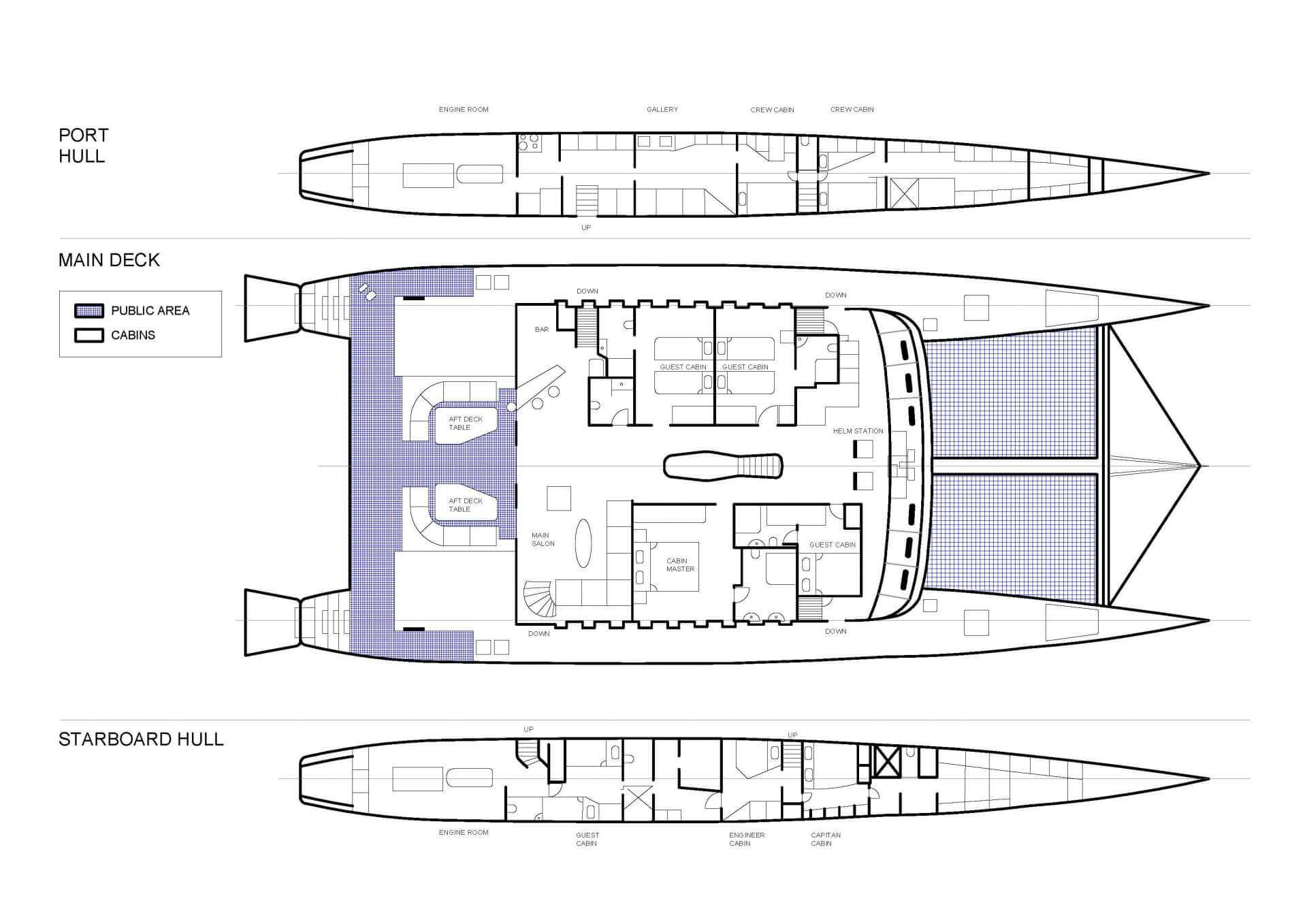 BELLA VITA es uno de los pocos catamaranes de lujo muy grandes del mundo. También ganó el premio a la mejor reforma nueva en los World Superyacht Awards en 2010 y tuvo otra reforma en 2018, por lo que está en plena forma. El velero BELLA VITA es un catamarán de fibra de carbono de última generación, lo que lo hace muy ligero para navegar o conducir a gran velocidad. Puede alcanzar velocidades de más de 20 nudos a vela, además de unos asombrosos 14 nudos a motor, ¡algo bastante inusual! Puede alojar a diez huéspedes en cuatro camarotes, con una tripulación de seis personas que presta un excelente servicio durante las vacaciones. Un dormitorio principal, un camarote doble y dos camarotes con dos camas individuales, todos ellos con cuartos de baño con ducha, televisores de pantalla plana y estaciones de conexión para iPod, conforman el amplio alojamiento del BELLA VITA para 10-12 huéspedes. Los cuatro camarotes tienen aire acondicionado. Es muy robusto y ofrece mucho espacio por ser un catamarán. Su moderno y espacioso interior está decorado con arce y bambú, lo que crea un ambiente fresco, tranquilo y relajante.