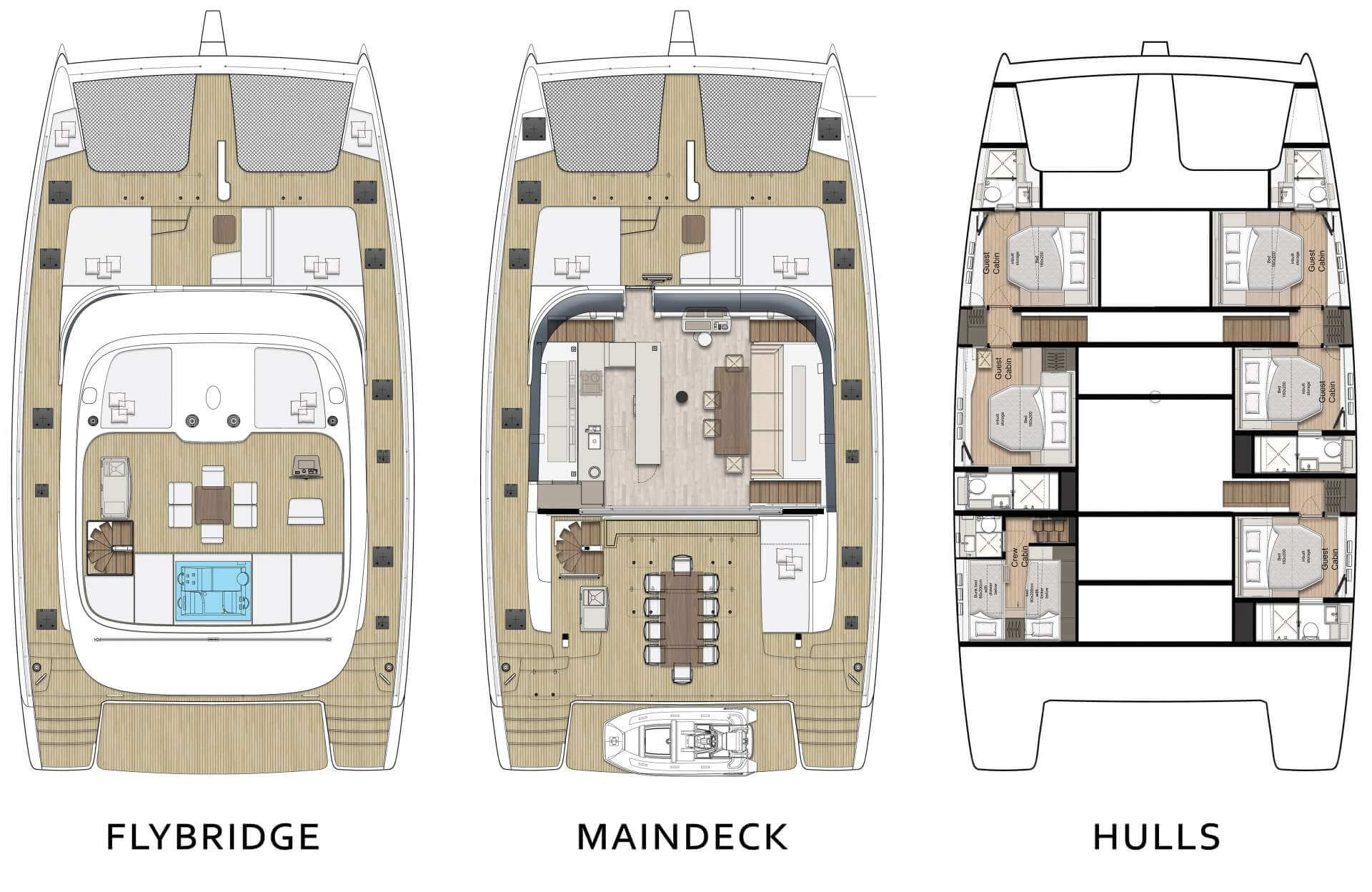 FEEL THE BLUE es un impresionante yate de lujo de alquiler y una de las joyas más nuevas de la flota de Sunreef Yachts Charter. Esta obra maestra moderna combina un diseño elegante, amplios espacios de vida, y la comodidad a bordo sin igual, ofreciendo una experiencia de navegación excepcional para un máximo de 10 personas. El yate cuenta con cinco elegantes camarotes con baño, cada uno adornado con una relajante decoración de inspiración náutica que evoca una sensación de serenidad y lujo. Cada camarote se ha diseñado pensando en la intimidad y el confort, para que todos los huéspedes disfruten de un apacible retiro. El corazón del yate es su espacioso salón, perfectamente conectado a una bañera abierta, creando un vasto espacio social semiabierto. Aquí, los invitados pueden relajarse en las lujosas zonas de estar, saborear comidas gourmet preparadas en la elegante cocina totalmente equipada, o simplemente disfrutar de las vistas panorámicas al océano. Para los que buscan tranquilidad y momentos al sol, el yate cuenta con una impresionante terraza delantera, perfecta para tomar el sol o relajarse con un buen libro. Para las vistas panorámicas y el ocio elevado, destaca el impresionante flybridge. Esta cubierta elevada ofrece amplios asientos, un bar y zonas para tomar el sol, por lo que es el lugar ideal para disfrutar de cócteles al atardecer o cenar bajo las estrellas. Con una tripulación profesional de tres personas dedicada a ofrecer un servicio de primera clase, cada detalle de su estancia en el FEEL THE BLUE está meticulosamente cuidado. Desde comidas gourmet hasta itinerarios personalizados, la tripulación se compromete a garantizar un viaje inolvidable. Combinando un diseño sofisticado, comodidades modernas y un servicio de cinco estrellas, FEEL THE BLUE es la elección definitiva para los viajeros que buscan una aventura en velero lujosa y despreocupada. Ya sea explorando calas idílicas o saboreando las vistas del atardecer desde el flybridge, cada momento a bordo promete relajación, indulgencia y aventura.