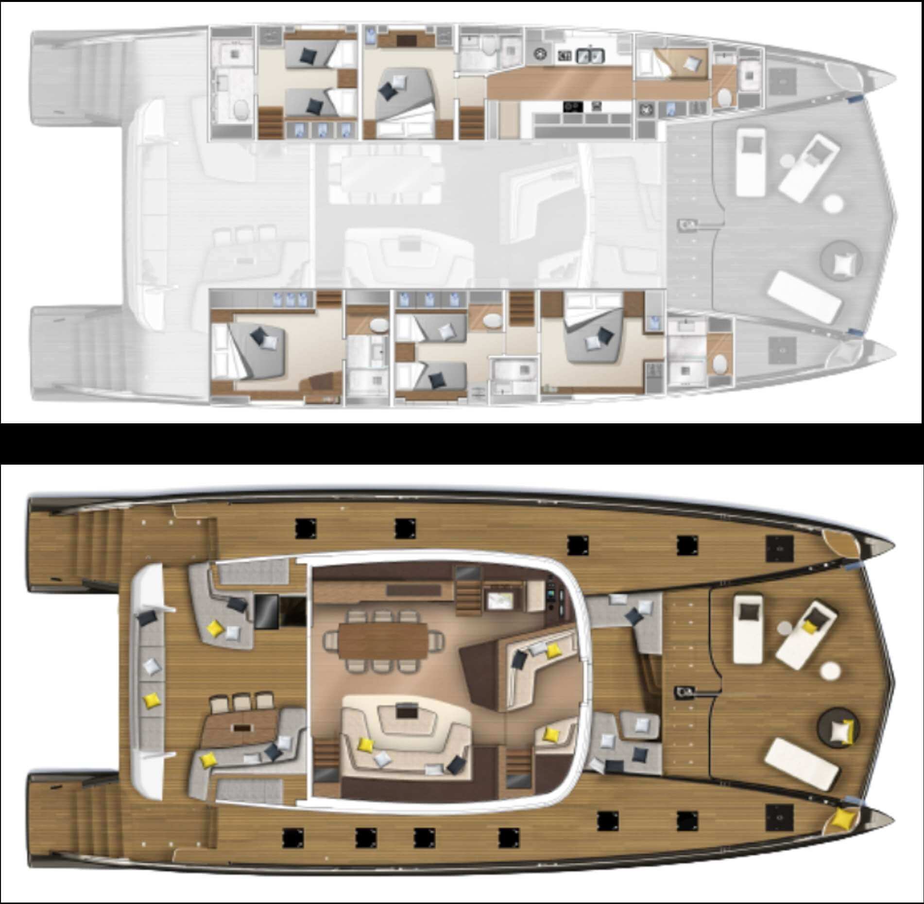 Siete Mares, un nuevo modelo 2025, eleva el diseño del Lagoon SEVENTY 8'con una serie de mejoras cuidadosamente pensadas. Equipado bajo la supervisión de una empresa de equipamiento profesional y puesto a punto por su experimentada tripulación, cada detalle refleja una cuidadosa consideración, desde la eficiente cocina del chef hasta la lujosa presentación de las comidas. El yate está preparado para un confort sin igual, con énfasis en el servicio personalizado, la cocina refinada y un sinfín de oportunidades para la recreación. Con capacidad para 8 personas, Siete Mares cuenta con cuatro camarotes versátiles, cada uno equipado con cuarto de baño, televisores y sistemas estéreo de primera calidad. El interior del yate cuenta con cubierta de madera, un diseño de cocina hacia abajo, un bar totalmente abastecido en el salón, y un salón interior con un retráctil de 55 pulgadas de TV de pantalla plana. Abundan las opciones gastronómicas, tanto en el interior como al aire libre, diseñadas para disfrutar de comidas memorables elaboradas a partir de un menú personalizable. Los servicios de a bordo garantizan una experiencia realmente envolvente, como una embarcación auxiliar Williams de 15 pies y 110 CV, un ascensor hidráulico, un sistema de tratamiento del agua de última generación y artículos de aseo ecológicos y seguros para los arrecifes. Los huéspedes pueden disfrutar de una amplia selección de juguetes y actividades acuáticas, como esquís acuáticos, wakeboard, kayak para dos personas, cuatro tablas de paddle surf (convertibles en windsurf) y ocho patinetes subacuáticos. Para relajarse, hay un muelle flotante, colchonetas de yoga, aparatos de gimnasia y un bar abastecido según las preferencias de los huéspedes. El yate también ofrece aparejos de pesca de altura, equipo de snorkel, juegos de mesa y cartas, y submarinismo con cita previa. Cada elemento del Siete Mares refleja un compromiso con el lujo, el confort y la aventura. Ya sea descansando en cubierta, degustando cocina gourmet o explorando el mar, los huéspedes encontrarán innumerables oportunidades para crear recuerdos inolvidables a bordo de este extraordinario barco.
