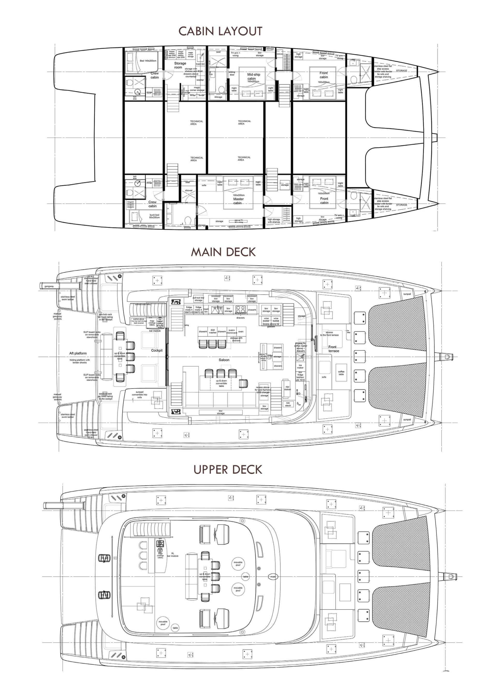 Elégant et adaptable Le Sunreef 80 Endless Horizon combine un style moderne avec des solutions d'aménagement innovantes et des performances fiables sous voile pour une navigation hauturière de luxe ultime. Ce navire spécial est une touche innovante sur le type de catamaran à voile populaire de Sunreef Yachts, avec d'énormes espaces de vie et une immense cuisine sur le pont principal.