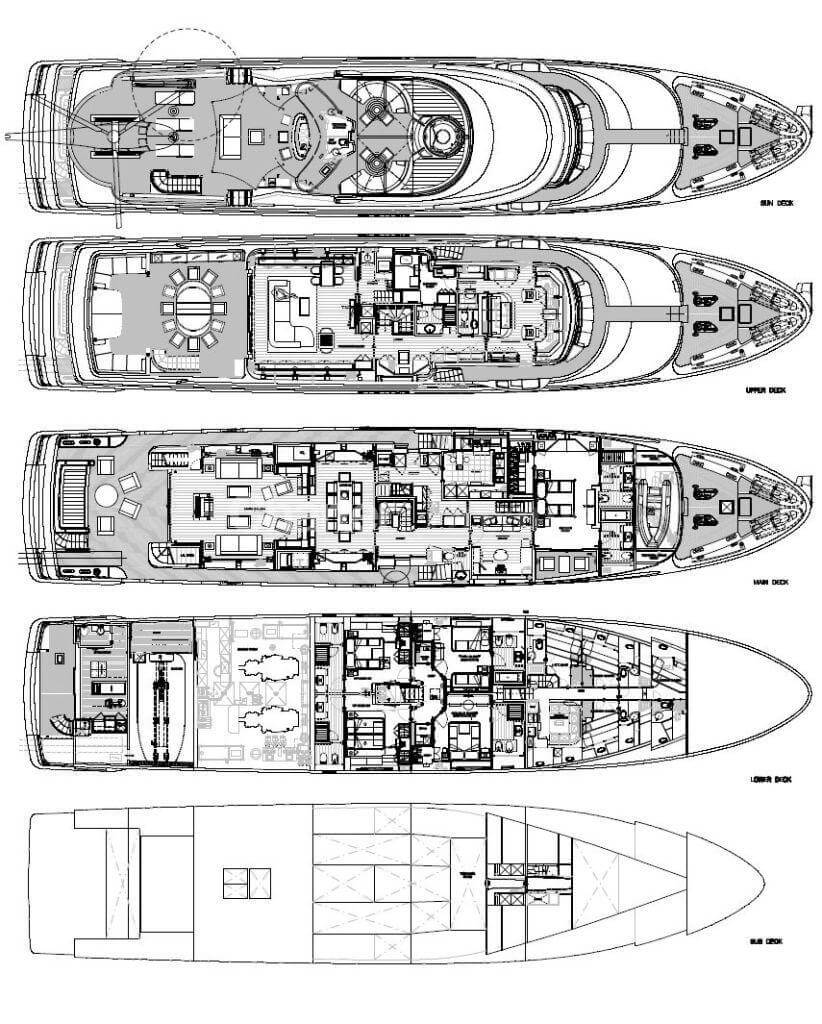 Lancé au cours de l'opulente année 2011, il a été conçu par les esprits visionnaires de Zuccon International pour incarner l'essence d'un luxueux intérieur de maison de plage dans le style des Hamptons. LADY TRUDY témoigne d'une élégance raffinée et vous invite à entrer dans un monde où le yachting transcende l'ordinaire et devient une expérience extraordinaire. Entrez dans l'opulence de la cabine principale, véritable sanctuaire doté d'un dressing somptueux, d'une salle de bain privée et d'un bureau majestueux&mdash ; un havre de paix au milieu des vastes étendues de la haute mer. L'attrait du LADY TRUDY est encore renforcé par trois cabines VIP, toutes méticuleusement conçues pour garantir à chaque invité un confort et un raffinement inégalés. Plus qu'un simple navire, LADY TRUDY est un chef-d'œuvre distingué et primé, réputé pour son design exceptionnel et son service hors pair. Au-delà de ses somptueux aménagements se trouve un royaume de luxe sans limites—un spacieux bain de soleil orné d'un jacuzzi revigorant et d'un cinéma en plein air, une collection de jouets nautiques d'élite, une salle de sport ultramoderne nichée dans la zone du club de plage, et une plateforme de baignade équipée de jet-skis et de jouets nautiques sur mesure, y compris un toboggan gonflable personnalisé tombant en cascade jusqu'au pont supérieur—promettant divertissement et excitation pour les invités de tous âges. Le LADY TRUDY n'est pas seulement une retraite luxueuse ; c'est l'incarnation même de la sophistication et de l'élégance, offrant un cadre incomparable pour toutes les occasions, qu'il s'agisse de réunions intimes ou de célébrations grandioses. Parmi ses innombrables charmes, il est l'endroit idéal pour assister au Grand Prix de Monaco, avec ses vastes ponts, dont un pont soleil agrémenté d'un bar à cocktails chic et de nombreuses places assises—un spectacle inoubliable vous attend. Que vous soyez à la recherche d'une location exclusive de yacht sur mesure ou d'un lieu idéal pour assister aux événements les plus prestigieux du monde, le LADY TRUDY est prêt à dépasser vos attentes les plus élevées. Lady Trudy est la quintessence du luxe familial, offrant un hébergement pour 11 invités dans un aménagement exquis comprenant une suite principale, trois cabines VIP et une cabine à lits jumeaux. La suite principale dispose de son propre bureau, d'un dressing et d'une salle de bains pour chacun, ce qui garantit un confort et une intimité inégalés. Avec un total de 7 lits, dont 1 king, 3 queen, 2 singles et 1 pullman, chaque membre de votre groupe sera comblé par le luxe. Avec un équipage pouvant aller jusqu'à 9 personnes à bord, votre expérience de location de yacht de luxe sera tout à fait transparente. CARACTÉRISTIQUES SPÉCIALES : - Cabine principale avec dressing, salle de bain privée et bureau. - Rayon d'action impressionnant de 3 800 km - Trois cabines VIP - Design intérieur primé de Zuccon Préparez-vous à vivre des vacances inoubliables à bord du yacht de luxe Lady Trudy de CRN.