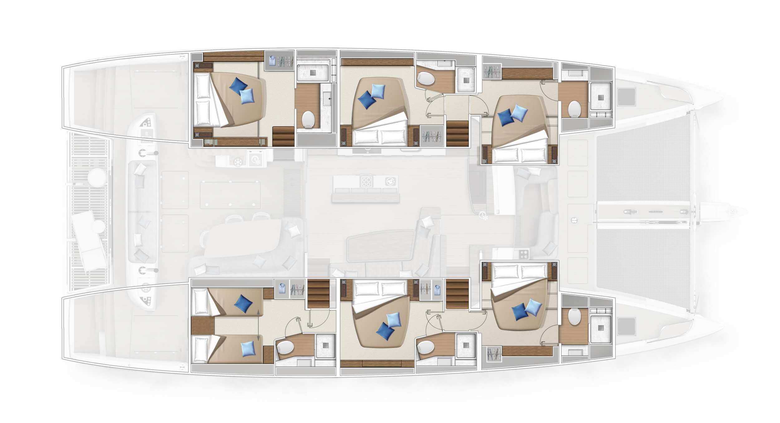 Montez à bord du remarquable Lagoon 65, et vous vous retrouverez dans les bras d'un navire qui s'est fermement établi dans les échelons supérieurs des yachts à voile de luxe. "WHITE CAPS" ; offre une abondance d'espace pour la relaxation et la socialisation, captivant instantanément tous ceux qui embarquent sur lui. Dès que vous posez le pied sur le "WHITE CAPS" ; vous serez séduit par les larges plates-formes du tableau arrière et les escaliers en pente douce, qui permettent aux invités d'accéder facilement au vaste cockpit. L'attrait du "WHITE CAPS" ; réside dans son design enchanteur, un mélange harmonieux de tradition et de modernité qui se traduit par des proportions généreuses. Le flybridge de "WHITE CAPS" ; occupe le devant de la scène, accessible par de larges escaliers sécurisés. Des portes coulissantes électriques permettent de fermer cet espace selon les besoins. Le flybridge du Lagoon 65 est un pont magnifiquement aménagé, avec deux postes de barre de part et d'autre, offrant des vues panoramiques et dégagées. Son bimini rigide est orné d'une vitre transparente, permettant au skipper de garder un œil sur les voiles hissées. Le flybridge est également équipé d'un vaste canapé somptueusement confortable avec de généreux rangements sous le canapé et un dossier inclinable pour plus d'opulence. Les aménagements à bord du "WHITE CAPS" ; comprennent quatre cabines à lits doubles et une cabine à lits jumeaux, qui peut être convertie sans effort en un lit double supplémentaire, toutes équipées d'une salle de bain. Pour ceux qui recherchent une expérience aquatique exaltante, un large éventail de jouets nautiques les attend, y compris un dériveur de 60 ch, un Sea Bob, des planches à pagaie, des planches à voile pour adultes et enfants, un canapé flottant, un tube à sensations, des skis nautiques pour adultes, un kayak, du matériel de plongée avec masque et tuba et du matériel de pêche. L'ennui n'a tout simplement pas sa place à bord du "WHITE CAPS." ; Le navire est complété par un équipage de quatre personnes dévouées et expérimentées, chacune excellant dans son rôle respectif. Le capitaine Christos, le chef Sotiris, le matelot Andreas et l'hôtesse Eleonora partagent un engagement inébranlable pour faire en sorte que les clients vivent une expérience de charter exceptionnelle. Leur priorité collective est d'élever vos vacances à la voile, vous permettant d'explorer la beauté stupéfiante de la Grèce avec un confort et un style inégalés. Cet équipage dévoué se surpasse constamment et réfléchit à la manière dont il peut rendre chaque moment mémorable pour les clients. Ils sont spécialisés dans l'organisation d'occasions spéciales avec finesse et de soirées à thème à bord pour créer une atmosphère inoubliable. Votre satisfaction et votre plaisir sont leur plus grande préoccupation, et ils ne ménagent aucun effort pour s'assurer que votre expérience de charter avec "WHITE CAPS" ; n'est rien de moins que paradisiaque.