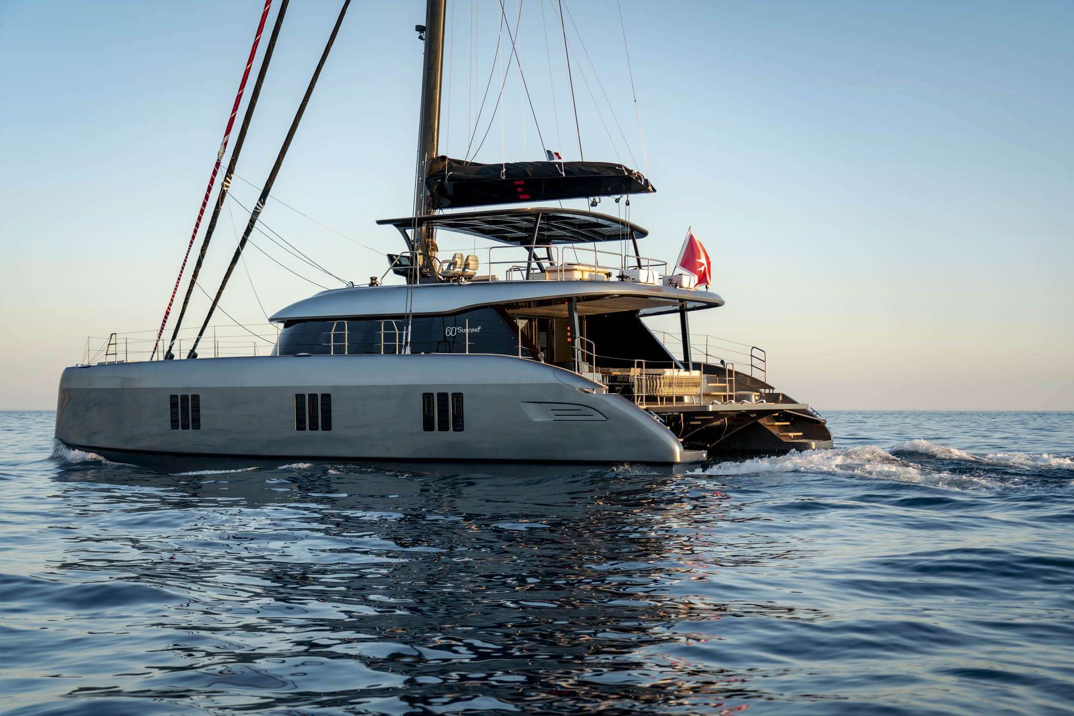 E SUPERCAT è un catamarano Sunreef di 60 piedi (18 m) che offre ai passeggeri charter una varietà di comfort, nonché l'intero piacere di viaggiare a vela.