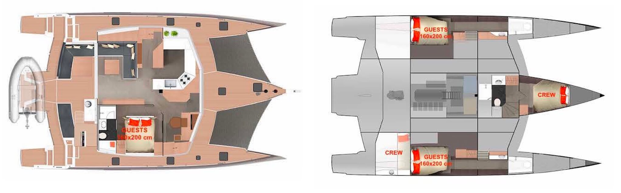 L'octant, uno splendido trimarano NEEL 51 e l'imbarcazione più recente della flotta Windward Island Yachting & Travels' è pronta ad accompagnarvi in un viaggio elegante e confortevole alla (ri)scoperta della Costa Azzurra, della Corsica o della Sardegna. Il vostro skipper vi aiuterà a trovare e navigare tra le insenature utilizzando un programma adatto alle vostre esigenze. Perché non decidere di assumere una hostess e rilassarsi al massimo durante il vostro charter? Scoprite come navigare da nord verso ovest (Cargese, Porto, Scandola, Calvi, Ile Rousse, Saint Florent e Capo Corso) o da sud verso la costa (Propriano, Roccapina, poi Bonifacio, le Isole Lavezzi e la Maddalena), nonché come tornare a Porto Vecchio passando per Santa Julia, Tamaricciu e Palombaggia. Si può godere delle sue distese pur mantenendo l'intimità nel pozzetto, sul tetto, sul trampolino o in una delle quattro camere distinte, ognuna delle quali ha il proprio bagno e la propria toilette elettrica con acqua dolce. È la barca a vela più spaziosa della sua categoria. Otto pannelli solari e un dissalatore da 100 litri all'ora consentono al NEEL 51 di produrre la propria acqua dolce, eliminando la necessità di passaggi in porto. Inoltre, i tre scafi della barca offrono medie di navigazione elevate e stabilità di navigazione.