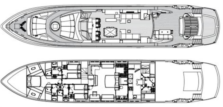 Questo 33 metri Sunseeker Predator 108 Quantum è noto per il suo sofisticato design esterno e di ingegneria e interni di lusso, un segno distintivo del famoso cantiere Sunseeker. Il suo stile senza tempo, arredi di lusso e posti a sedere sontuosi si combinano per creare un'atmosfera elegante e confortevole come si noleggia questo yacht incontaminato in Croazia. Questo yacht Sunseeker è uno yacht sportivo elegante e potente. Numerosi bagni di sole, una vasca idromassaggio, sistemi audio e video, stabilizzatori, così come un ampio ponte posteriore con bar e barbecue personalizzato sono ideali per ospitare fino a 8/10 persone per una crociera di lusso in Croazia. Quantum ospita comodamente fino a 10 persone in 4 cabine en-suite, tra cui una master suite, una cabina doppia e due cabine doppie con letti pullman per garantirvi una crociera di lusso. Tutto questo è abbinato ad un eccezionale equipaggio di quattro persone. L'interno è altrettanto sorprendente. Il bellissimo legno di ciliegio satinato crea un effetto neutro e senza tempo quando è accoppiato con un arredamento morbido grigio chiaro. Sedute comode, un bar, un tavolo da pranzo formale per sei persone e un sistema di intrattenimento completo, con uno schermo Samsung LED 3D da 50 pollici montato su un sistema di salita e discesa, sono tutti presenti nell'enorme salone. Il tetto rigido completamente apribile del salone dà un'atmosfera luminosa e ariosa. Il Sunseeker Predator 108 QUANTUM viene fornito con un Tender Williams 455 JET e una grande varietà di nuovi giochi d'acqua, tra cui un 1x Kawasaki Jetski, 1x Radinn Electric JetBoard (nuovo 2020), 2x Seabobs (nuovo 2019), 2x SUP (nuovo 2019), 1x Wakeboard (nuovo 2019), 1pr Water Skis (nuovo 2019), 1x Jobe Tribal Towable per 2 pax (nuovo 2019), e attrezzatura da snorkeling Disponibile per il noleggio da Zara, questo magnifico yacht vi permetterà di godere di una crociera di lusso nel Mar Adriatico. A nord verso l'Istria potrete scoprire la capitale Pola e le belle isole croate di Cres o Krk. Di fronte a Zara, a due passi avrete la possibilità di navigare nelle famose 1000 isole che formano l'arcipelago delle Kornati. Più a sud lungo la costa vi fermerete a Biograd, Trogir, Spalato e naturalmente Dubrovnik dopo aver attraversato le isole dalmate di Hvar, Brac o Korcula.